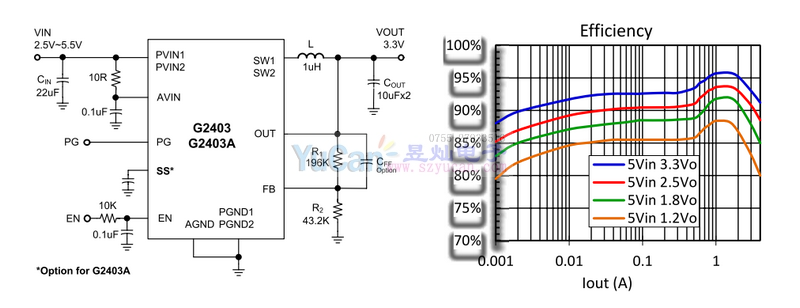 G2403/G2403A是一款4A高效恒定導(dǎo)通時間控制的同步降壓轉(zhuǎn)換器。它采用2.5V至6V的輸入電壓工作,輸出范圍為0.6V至輸入電平,這要歸功于其100%占空比工作。其先進(jìn)的恒定導(dǎo)通時間控制Fast-PWM方案簡化了環(huán)路補償,并提供出色的負(fù)載瞬態(tài)響應(yīng),同時保持相對恒定的1.25MHZ開關(guān)頻率。 G2403/G2403A消耗極低的15uA靜態(tài)電流,因此可實現(xiàn)出色的輕載效率??刂骗h(huán)路中的高增益誤差放大器提供出色的負(fù)載和線路調(diào)節(jié)對于容錯操作,G2403/G2403a具有逐周期電流限制保護(hù)和短路或過載條件下的打嗝模式G2403/G2403A可用于QFN3*3mm封裝,是高性能便攜式應(yīng)用的理想選擇
