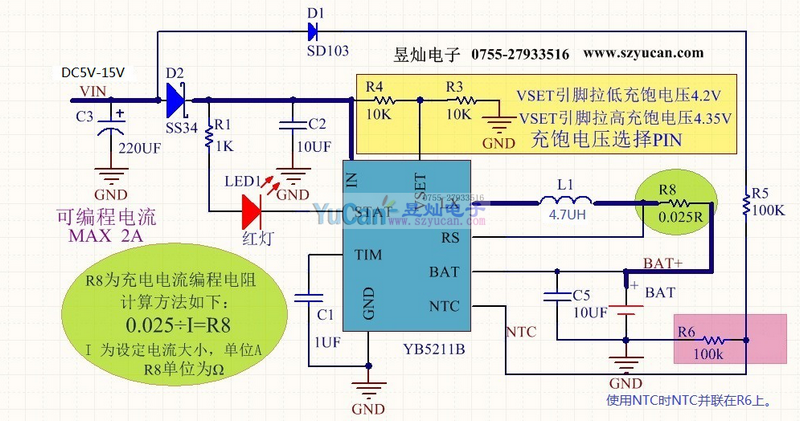 YB5211B高輸入耐壓單節(jié)4.2V/4.35V鋰電池充電芯片