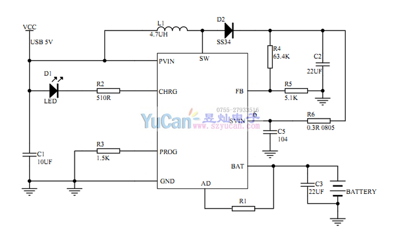 熱反饋可對(duì)充電電流進(jìn)行自動(dòng)調(diào)節(jié),以便在大功率操作或高環(huán)境溫度條件下對(duì)芯片溫度加以限制。充電電壓始于7.2V,也可通過(guò)外圍電阻調(diào)節(jié)。而充電電流可通過(guò)一個(gè)電阻器進(jìn)行外部設(shè)置。當(dāng)充電電流在達(dá)到最終浮充電壓之后降至設(shè)定值1/10時(shí),YB6502將自動(dòng)終止充電循環(huán)